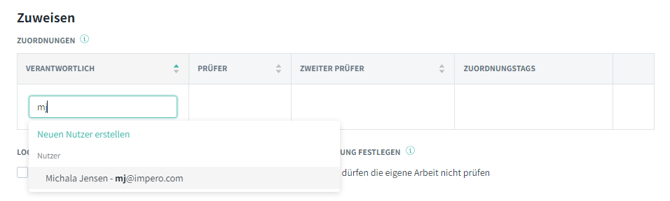 Hinweis: Sie müssen einen Verantwortlichen zuweisen, bevor Sie Prüfer zuweisen können! Die Zuweisung von Prüfern ist optional.