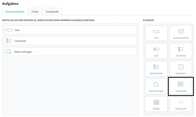 Wie kann ich das Datenblatt in Kontrollen integrieren?