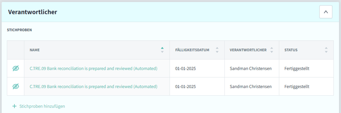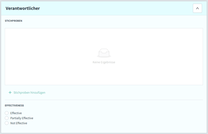 Die Kontrollen können so viele Felder enthalten, wie der Ersteller festgelegt hat, aber sie umfassen mindestens ein Feld mit Stichproben und ein Feld für die Schlussfolgerung zum Test. Der eigentliche Test sowie die Formulierungen können sehr unterschiedlich aussehen.