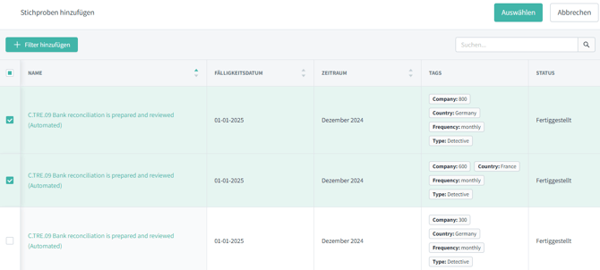 Wenn bereits Stichproben vorhanden sind, wurden diese vom Testersteller vordefiniert, und Sie müssen keine weiteren hinzufügen.