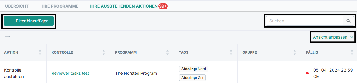 Um die Liste für Sie zu optimieren, können Sie filtern, Suchbegriffe eingeben und die gewünschten Spalten über „Ansicht anpassen“ anzeigen.