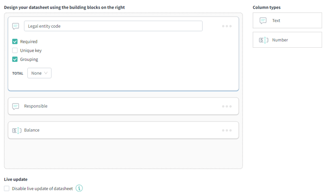 Tip! The datasheet can also be added to an existing control in the control program.