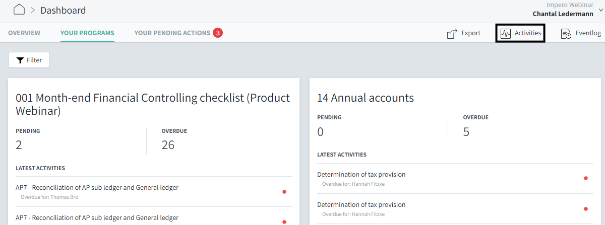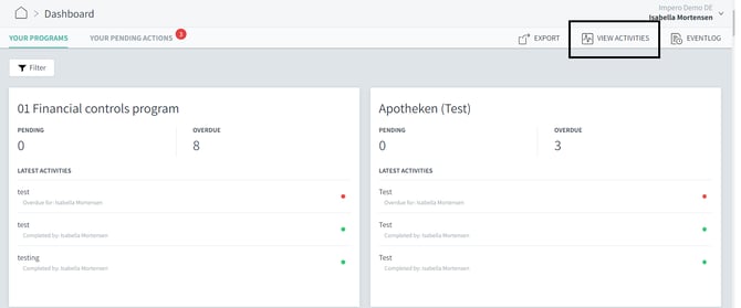 To export all or a subset of your control activities meaning controls that had been sent out to responsibles: