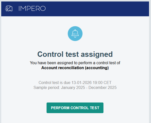 Alternatively, you can log in to Impero and navigate to the “Your pending tests” section via the “Control Testing” module.
