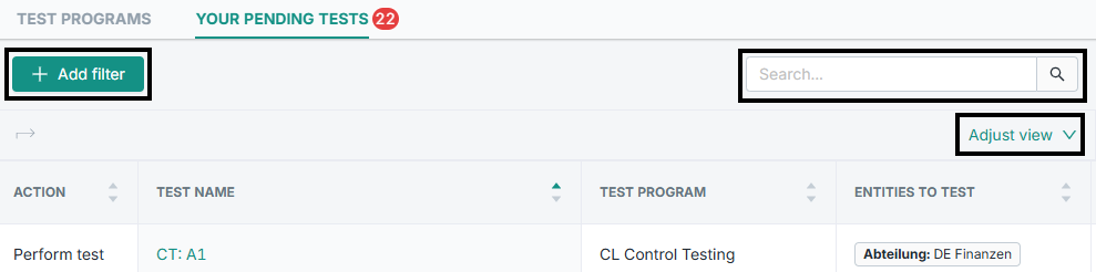 To optimize the list for you, you can filter, enter search terms, and display the desired columns via “Adjust view.”