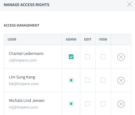 4) Add the users with one of the 3 rights (Figure 2) and click on "Update".