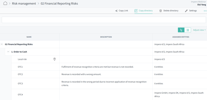 Are you a part of the global administration team and need to ensure the entire organization’s and specialist departments’ adherence to corporate risk management standards? Either for your initial onboarding or use case expansion, duplicate your risk directory, so your colleagues and teams can utilize: