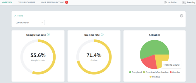 See how many control activities were completed (on time) in the current and previous month