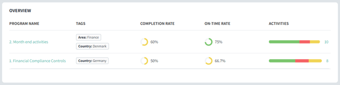 - Understand how well controls are performing in specific business or compliance areas (typically grouped by control programs)