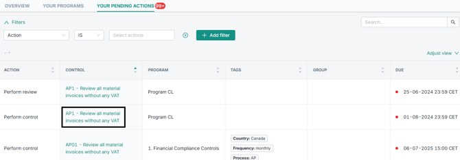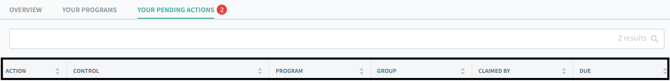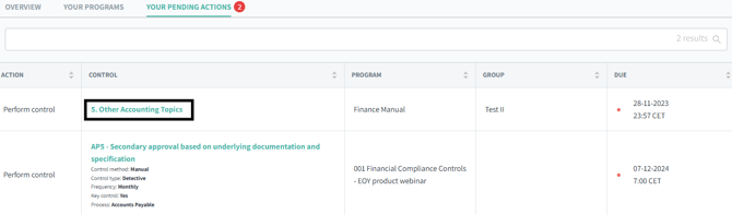 1. From the dashboard, click on the “Your Pending Actions” tab as shown below, to get a list of controls assigned to you.